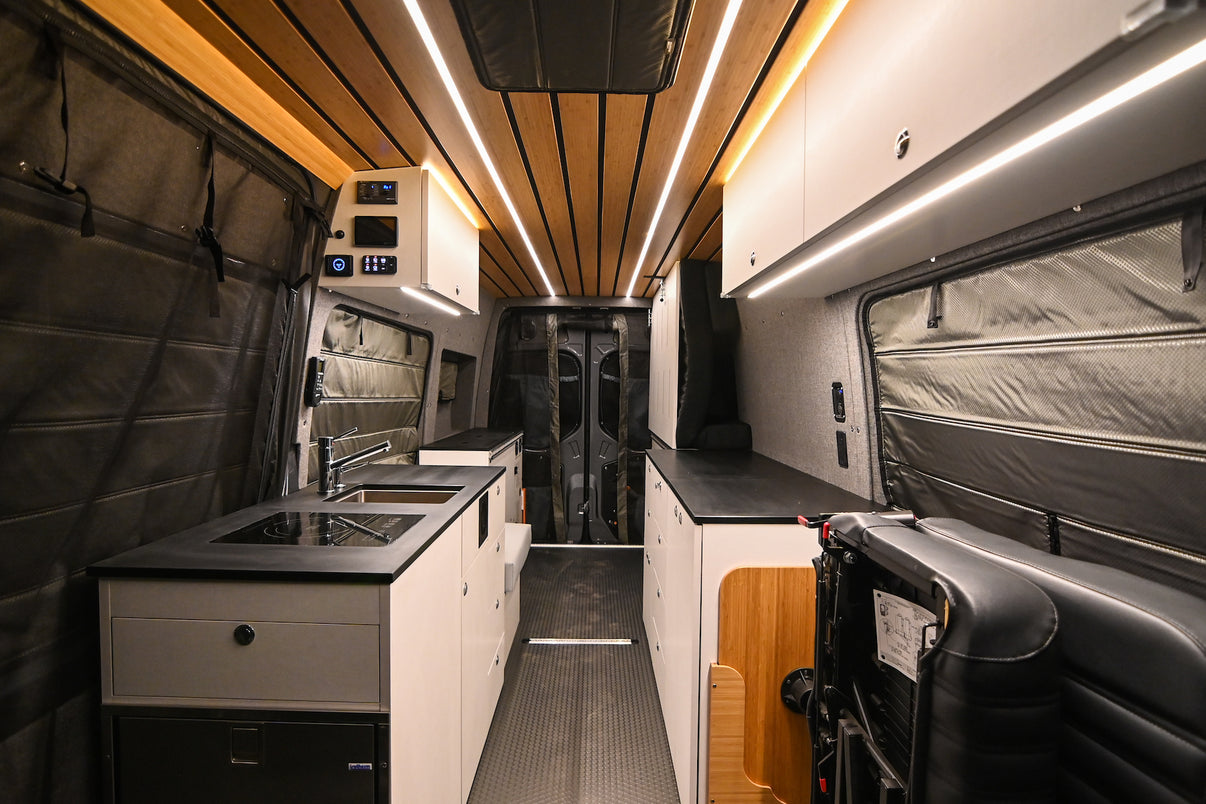 This 170 4x4 is a play on the Shasta model but with a Hide-n-Go seat swapped in for the standard bench to seat 2 more people on occasion. Flarespace Flares help open up the space and make room for the bench seat by the bed to be used as a step or as a bed for the dog who is typically a bed hog.