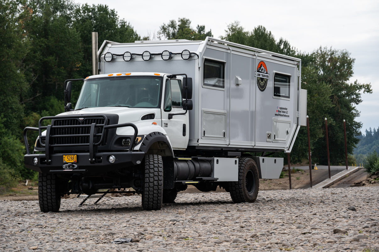 This huge International 4x4 is off and roaming the hills of the PNW. An underrated platform for expedition trucks, this rig is reliable, has parts accessible throughout most of the world, and has huge ground clearance with a low-range transfer case.